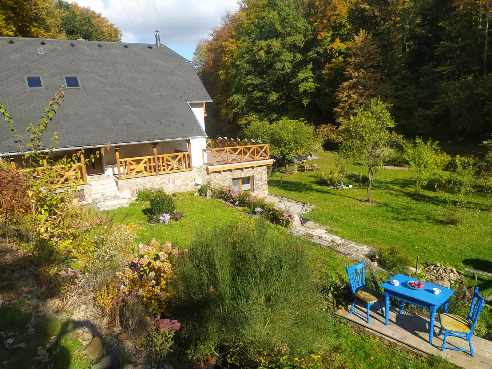 Ať je léto nebo zima u nás máte vždy to správné klima. K dispozici je upravená zahrada o rozloze 4000m², která nabízí dostatek soukromí a prostoru k relaxaci, s čistým a provlhčeným vzduchem díky kaskádám říčky Olešnice.