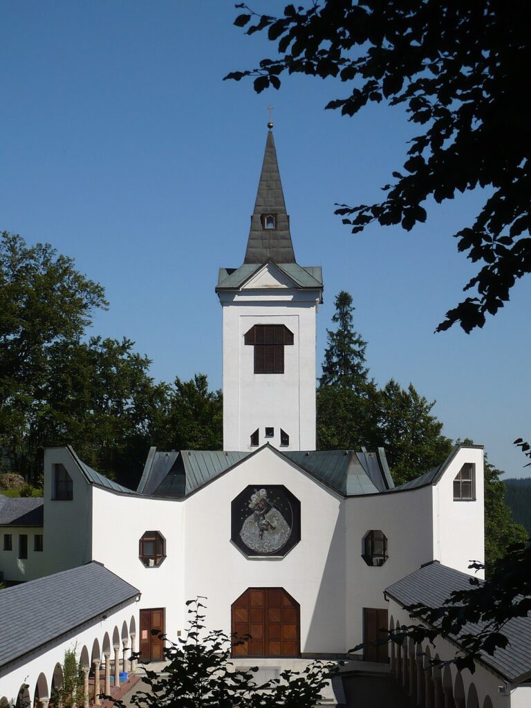 Poutní kostel Panny Marie Pomocné (také Maria Hilf) se nachází asi tři kilometry jižním směrem od Zlatých Hor.